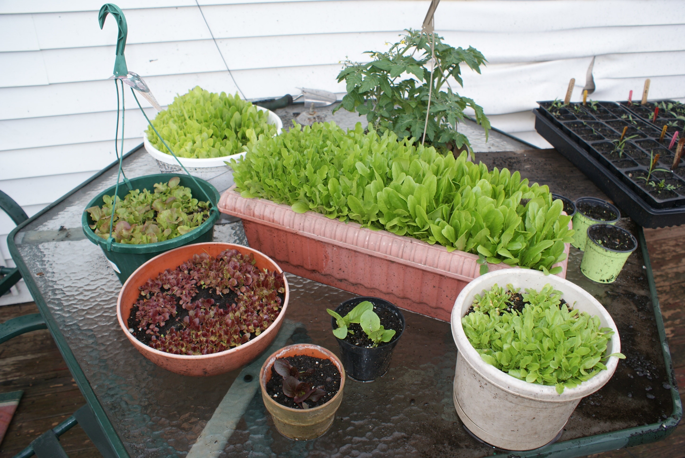 pulled that day. Joyce also supplied me pictures of their lettuce that is already being harvested. I can’t wait until I can go out on my deck and make my own salad with the lettuce, tomatoes, onions, spinach, and peppers growing in my own container garden.