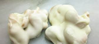 handling the bowl and stirring the discs. Stir in half of the cashews. Mix thoroughly. Drop rounded spoonfuls onto waxed paper or in candy cups and allow to cool and set up.